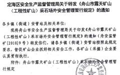 转发《舟山市露天矿山(&金年会官方登录性矿山)采石场外安全管理暂行规定》的通知