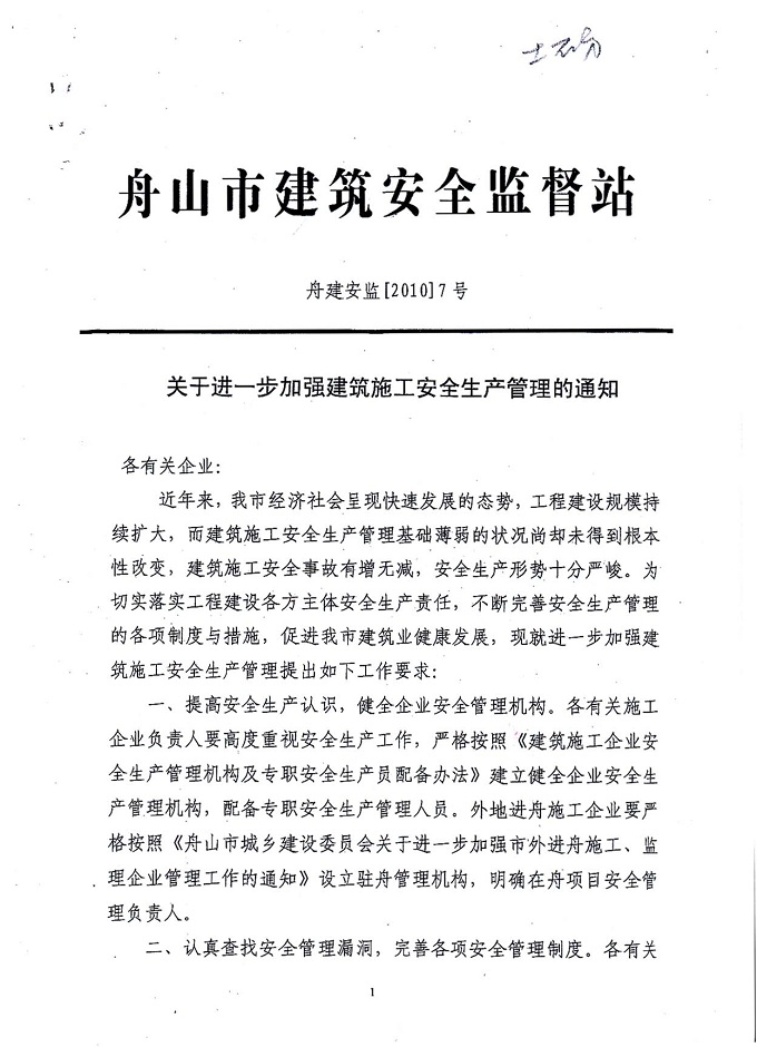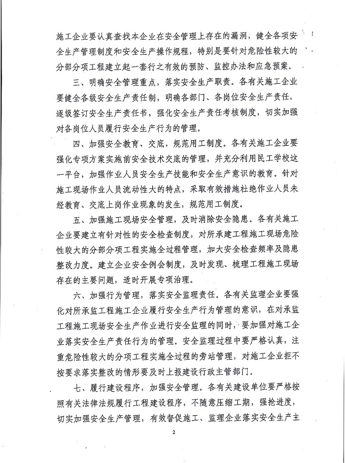 关于进一步加强建筑施工安全生产管理的通知