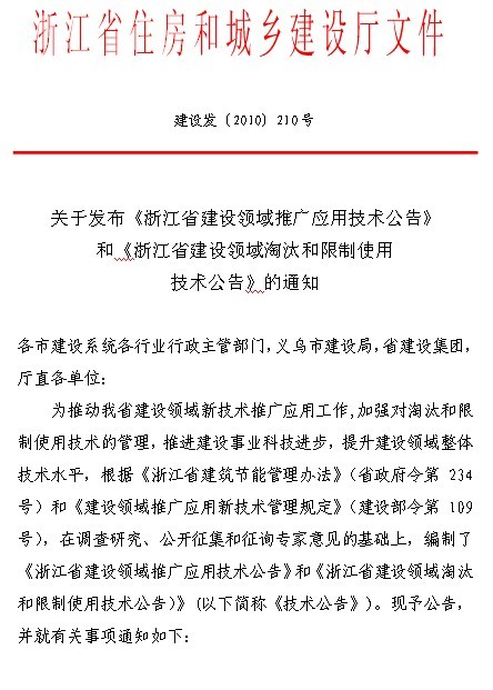 转发省住房和城乡建筑厅关于发布《浙江省建筑领域推广应用技术公告》等通知