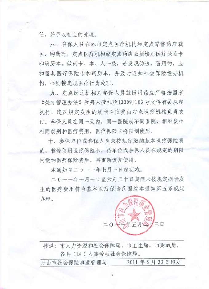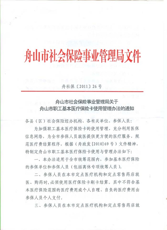 关于舟山市职工基本医疗保险卡使用管理办法的通知
