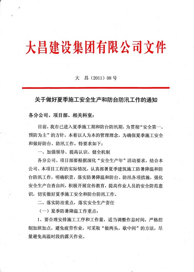 关于做好夏季施工安全生产和防台防汛工作的通知