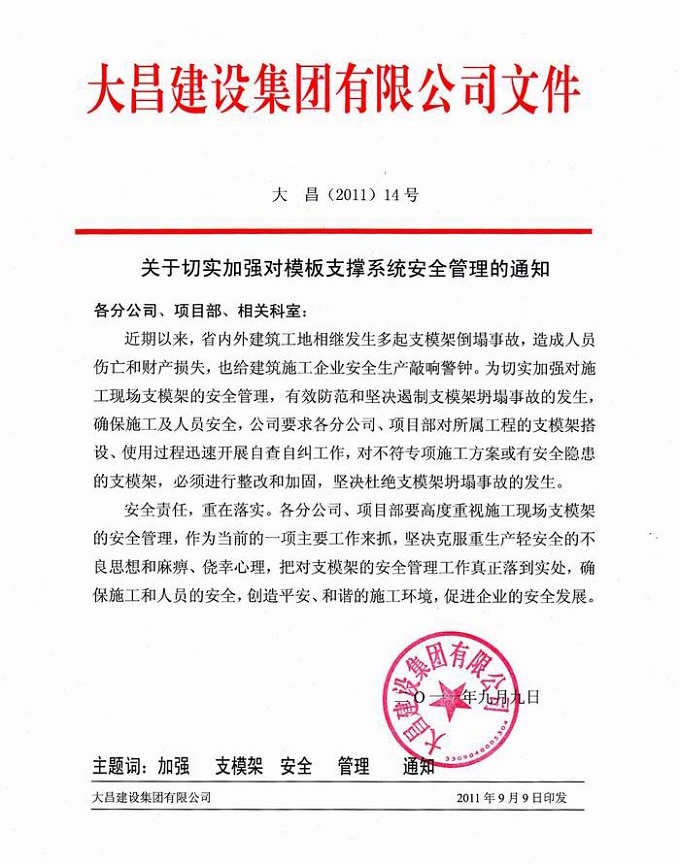 关于切实加强对模板支撑系统安全管理的通知
