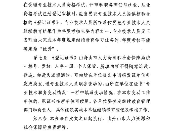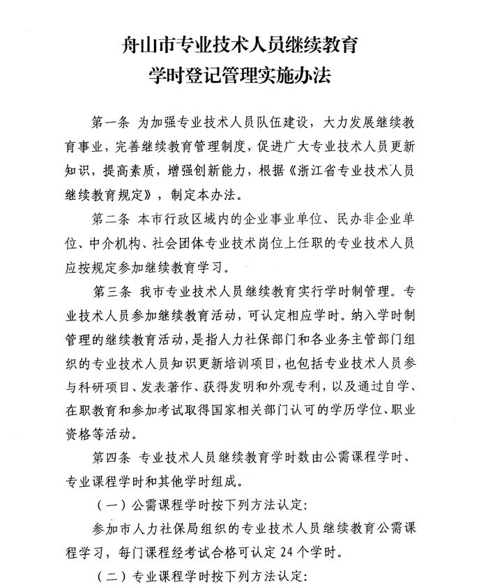 关于舟山市专业技术人员继续教育学时登记管理实施办法的通知