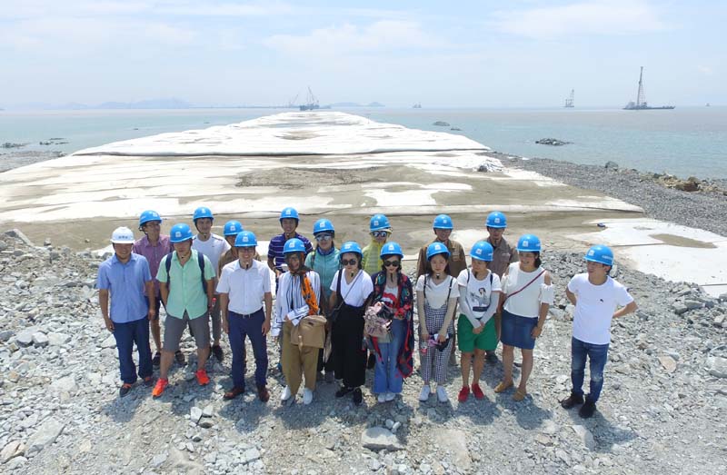 本次活动得到了全市各大企业青年代表的积极响应,团市委副书记陈涛及各企业青年代表参加了此次活动。在36度的高温下,青年代表在观景平台和鱼山大桥全方位的参观了鱼山石化基地建筑工地,让青年代表真真切切地感受到鱼山石化基地热火朝天的建筑场面。参观工地建筑之余,各位青年代表在我公司项目部会议室听取了我公司鱼山项目总工的简要汇报,从一张张工人的生活和工作照片,青年代表感受到鱼山石化基地建筑者工作之艰难,&金年会官方登录之繁复。