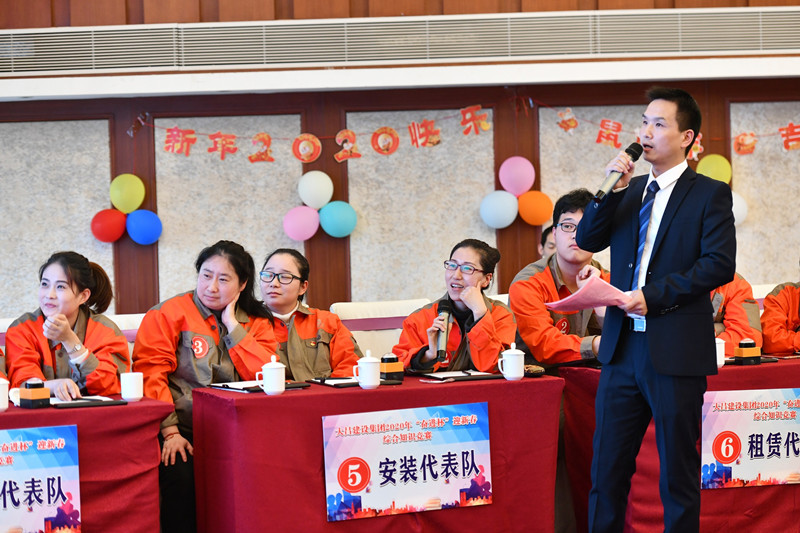 金猪报喜辞旧岁,瑞鼠纳福迎春来。为提高员工知识素养,凝聚企业团结力量,1月7日,集团公司2020年“奋进杯”迎新春综合知识竞赛在舟山世茂大酒店21楼国际厅举行。市总工会副调研员兼基层工作部部长吴有财、市住建局党委委员、工会主席汤涤波、市住建局工会副主席张海滨,集团公司董事长张雪如、总裁管志强等集团公司领导莅临指导。