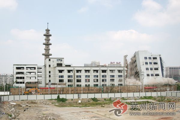 苏州新闻网讯(记者 吴洋 王楠)今天(9月18日)上午12点整,位于苏州火车站前苏站路上的邮政大楼及其微波发射塔实行了定向爆破。据了解,邮政大楼高36.5米,发射塔高84米,相关部门在楼内和塔下共设置了700个孔,放置72公斤炸药,爆破地点周边100米实行交通管制。