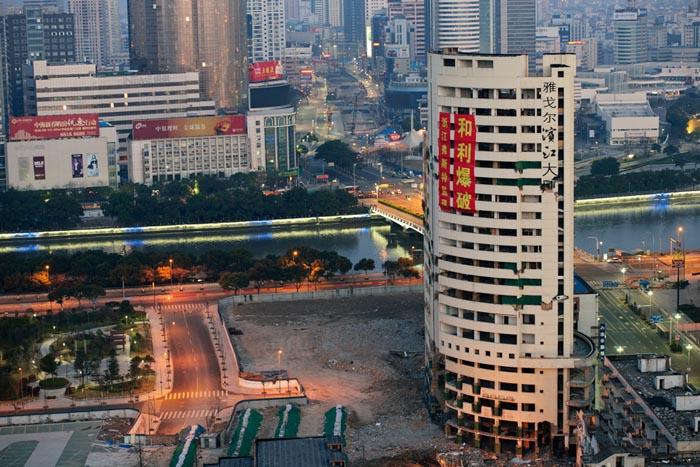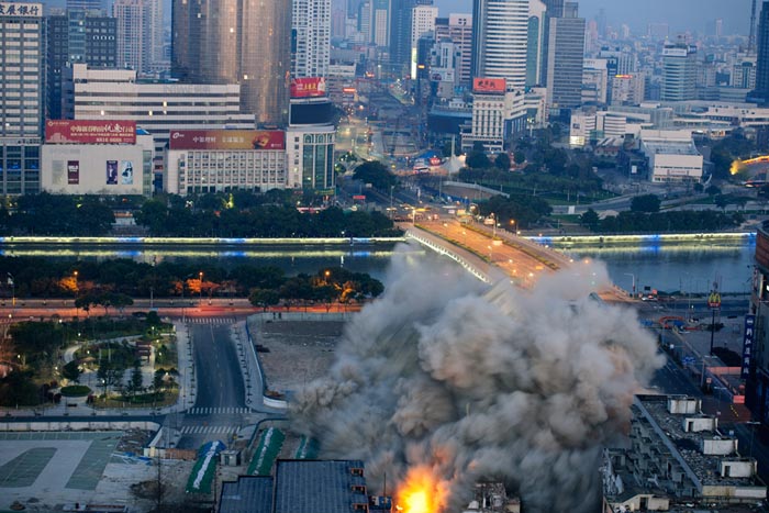 宁波市中心两高楼成功爆破拆除
