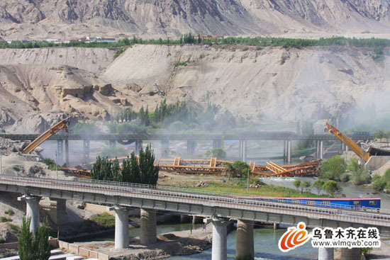 另外,孔雀河大桥爆破后距大桥300米区域内各项工作正常开展,交通秩序恢复正常。孔雀河大桥爆破后后期机器拆除与河床段的清碴工作同步施工。
