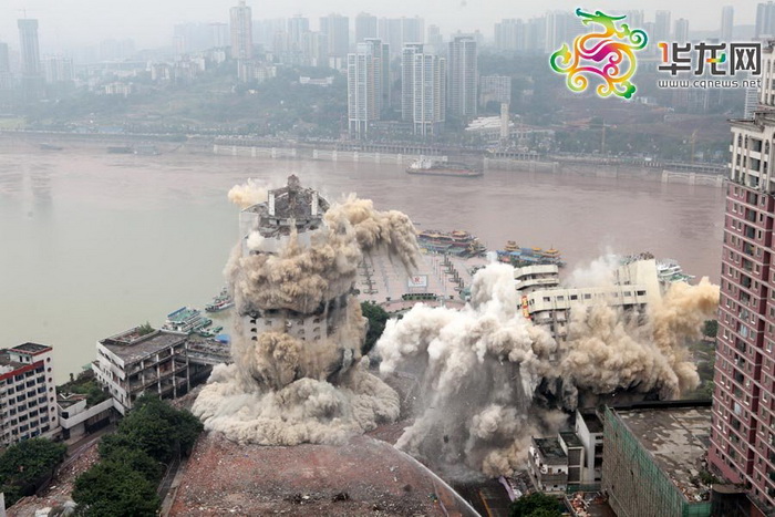 8月30日,重庆港客运大楼和三峡宾馆被爆破拆除,瞬间化为瓦砾。这两幢重庆朝天门地标性建筑正式谢幕,取而代之的将是一座出资210亿元人民币的现代化城市综合体“朝天扬帆”。朝天门是长江、嘉陵江的交汇处,是重庆一大地标。矗立于朝天门广场上的32层高楼“重庆港客运大楼”形如桅杆,紧邻其侧的便是“三峡宾馆”,这两栋建筑和朝天门码头构成了海内外游客对重庆的最初印象。